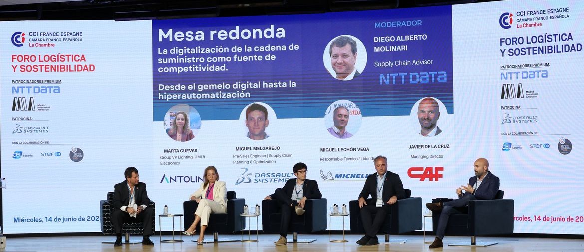 Por segundo año la Cámara de Comercio Franco-Española en colaboración con NTT Data, MIA y Dassault Systèmes, organizó el jueves 14 de junio un Foro empresarial en el que expertos de empresas socias han debatido y compartido soluciones sobre logística, sostenibilidad, digitalización, transporte e hiper automatización.