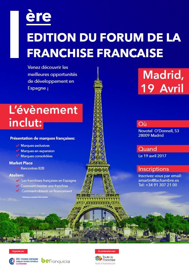 La Chambre Franco-Espagnole, en collaboration avec Toute la Franchise, organise à Madrid un Forum dédié aux enseignes françaises