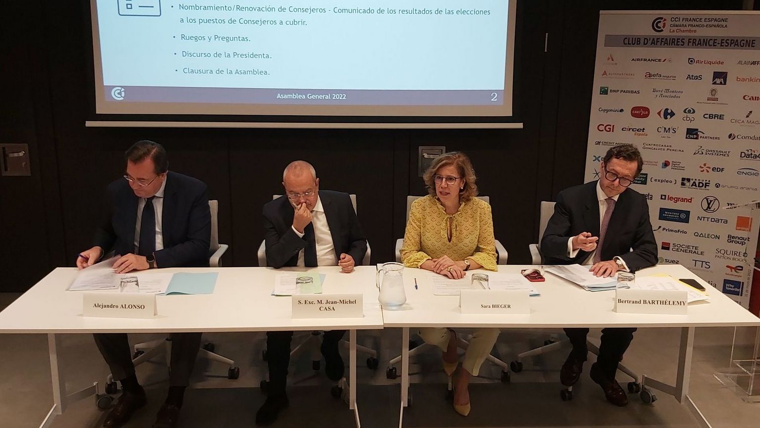 Validadas las cuentas del ejercicio 2021 y la ratificación del nuevo Consejo de Administración, Sara Bieger y el Secretario General Alejandro Alonso, quisieron agradecer el trabajo de los consejeros salientes Philippe Dillmmann, Cyrille Masquerelle y Jesús Carmona y dar la bienvenida a los nuevos Ana Gil y Alexandre Frota