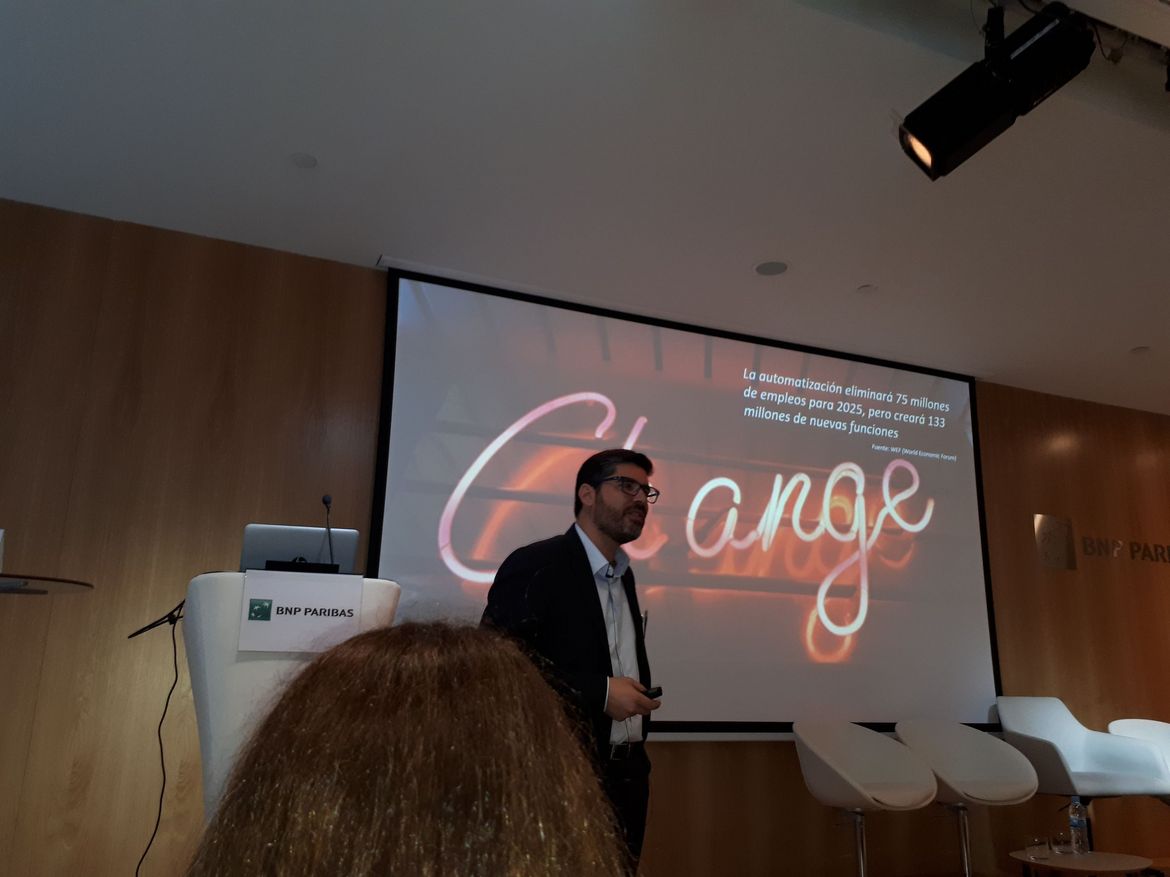 La problemática está en los nuevos roles, tenemos que cambiar las gafas a nuestra gente para que sean empleables en el futuro. Tenemos que crear 133 millones de puestos de trabajo, de los que muchos no sabemos ni cuáles son, pero al mismo tiempo tenemos 23 millones de puestos que en unos pocos años van a desaparecer. “Tenemos que prepararnos hoy, para que esas personas mañana puedan desarrollar un puesto que exista en las organizaciones”.