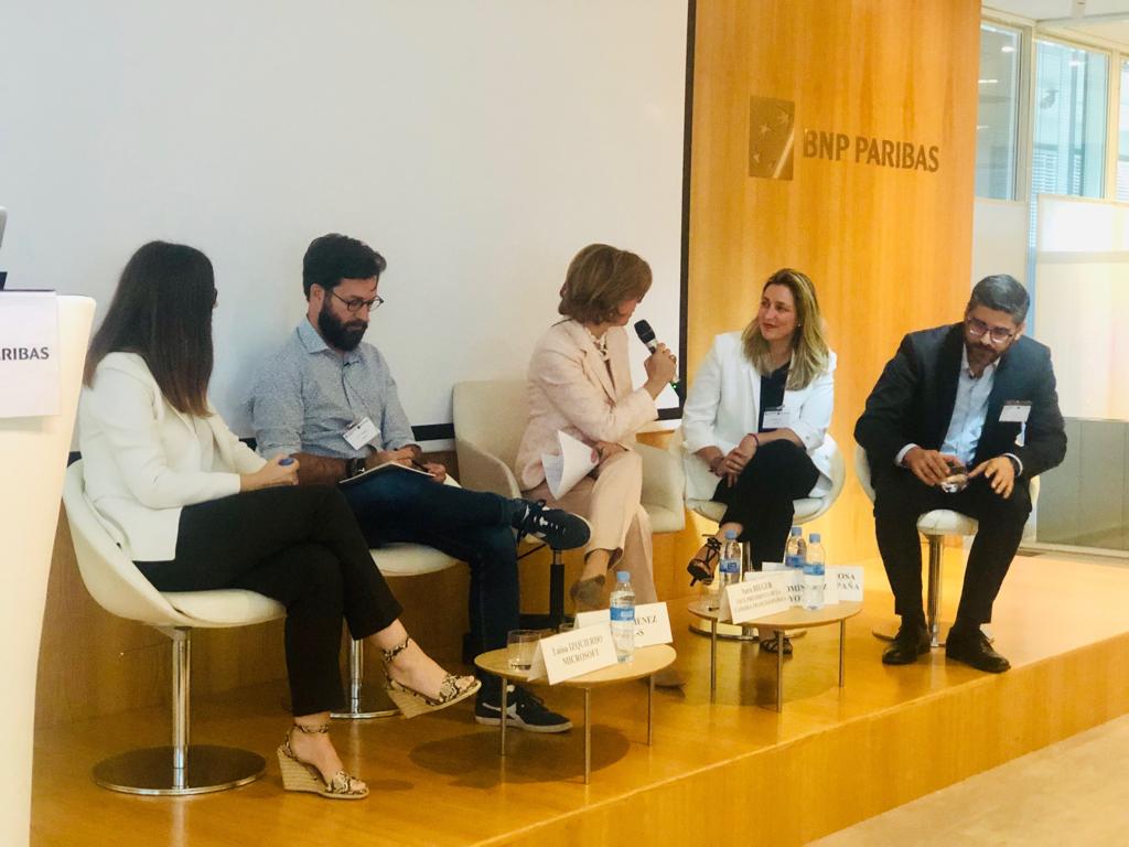 Cuatro grandes grupos de los sectores de consultoría (Zapiens), tecnología (Microsoft), banca (Grupo BNP Paribas) y automoción (Toyota), han compartido, sus respectivas experiencias a la hora de abordar el impacto de la Inteligencia Artificial en las empresas.