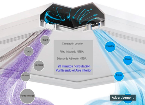 Los dispositivos RZERO FC50 constituyen uno de los sistemas de prevención y control de infecciones más avanzados y se integran en armonía con la arquitectura de los edificios, por lo que no requieren de revestimientos especiales. Con la apariencia de una luminaria de techo, cada sistema ilumina la estancia con luz led y, por catálisis, renueva cada hora la totalidad del aire en una superficie de 45m2 con una eficacia del 99,9%.