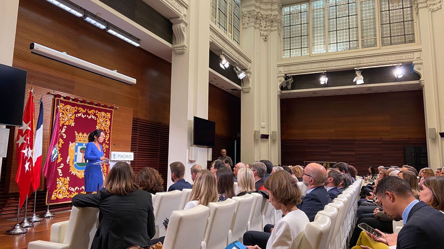 Nuestros expertos intervinieron en un acto que tuvo lugar en el Palacio de Cibeles junto con el Alcalde de Madrid, José Luis Martínez -Almeida. Recibimos una delegación organizada por la asociación de los alcaldes de la región parisina. Una delegación encabezada por, Stéphane Beaudet, vicepresidente de la región parisina que genera un 31% del PIB nacional, con el poder adquisitivo más alto de Francia y un PIB/cápita de unos 58.000€. Durante una hora, el equipo de la Cámara presentó la economía española y respondió a las numerosas preguntas de la delegación.