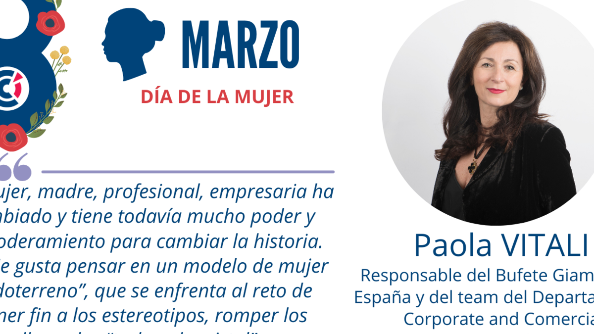 Me gusta pensar en un modelo de mujer “todoterreno”, es la mujer que se enfrenta al reto de poner fin a los estereotipos, de romper los llamados “techos de cristal”, que se guía por un sentido de corresponsabilidad, que sabe y quiere compatibilizar su trabajo con las tareas más tradicionales que a la misma se asocian, como el cuidado de la casa o de los hijos, que lucha y avanza para obtener en el mundo laboral y profesional las mismas oportunidades que los hombres. Estos son los principales retos que en lo cotidiano y desde mi pequeña aportación como Responsable del Bufete Giambrone España y del team del Departamento Corporate and Comercial, que por cierto está integrado sólo por mujeres, animó a perseguir y conseguir."