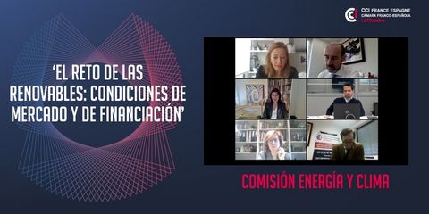 Este pasado miércoles la Cámara Franco-Española ha celebrado el webinar ‘El reto de las renovables: condiciones de mercado y de financiación’ en el que se han analizado las condiciones necesarias para alcanzar los objetivos de energías renovables planteados por el Plan Nacional de Energía y Clima 2021-2030, uno de los principales motores del Plan nacional para la recuperación, transformación y resilencia de la economía española.